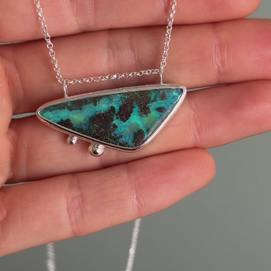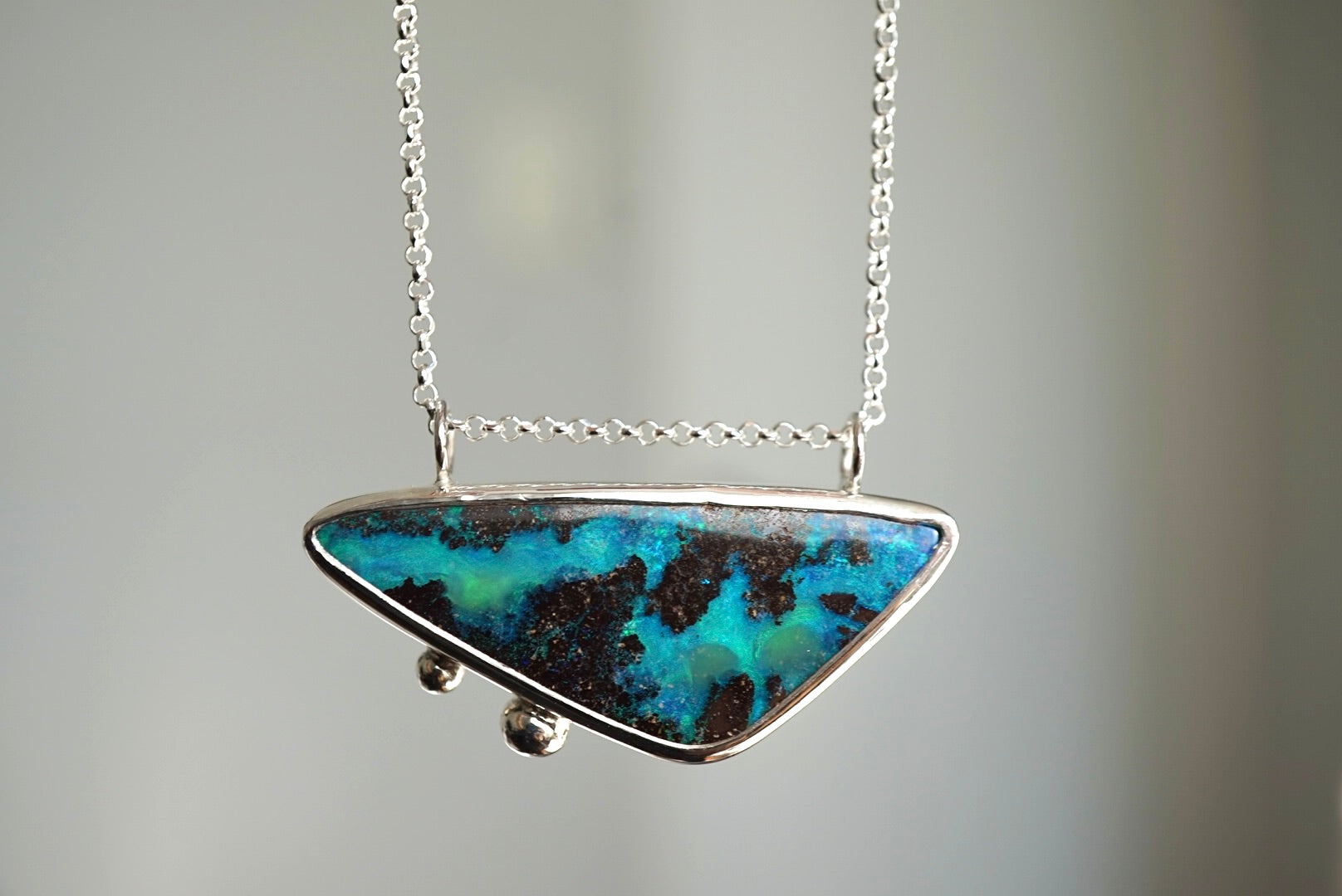 A one-of-a-kind pendant featuring a solid boulder opal with rich teal, turquoise, and deep ocean blues — it resembles the stunning colours of the Australian Great Barrier Reef.