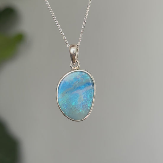 Handcrafted in solid 925 sterling silver, this pendant celebrates the beauty of natural opal with a soft ocean-inspired palette, perfect for everyday wear or as a meaningful keepsake.