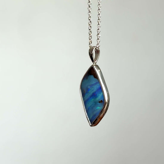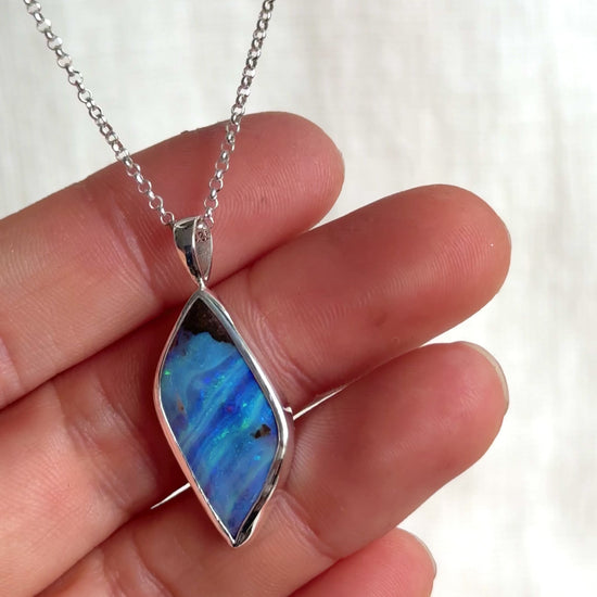 A one-of-a-kind boulder opal with waves of deep blue and turquoise, echoing the rhythm of the sea.
